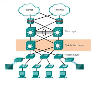 Traditional campus network design involves splitting up a network into different “tiers” or layers.